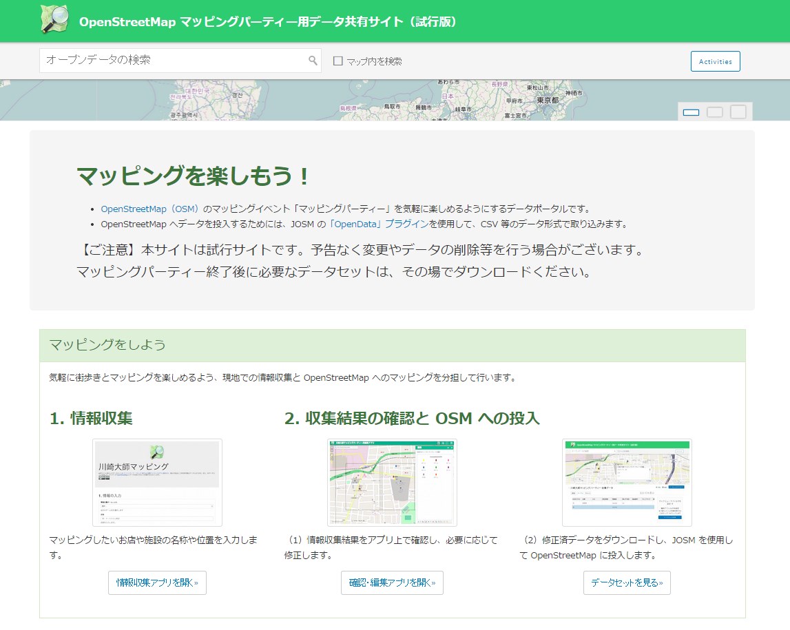 OpenStreetMap マッピングパーティー用データ共有サイト(試行版)