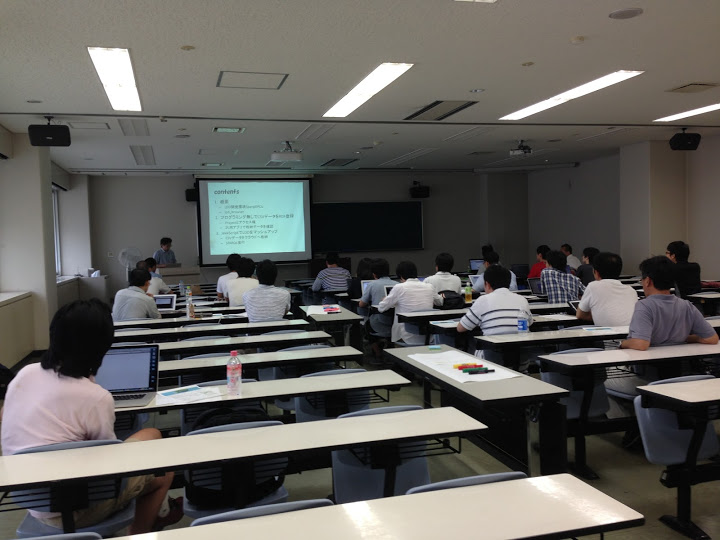 まずは自己紹介をしました。参加者は30名程度。大学の先生から企業人、研究者まで様々なバッ クグラウンドの人が参加しています。初参加の方も数名いらっしゃいました。